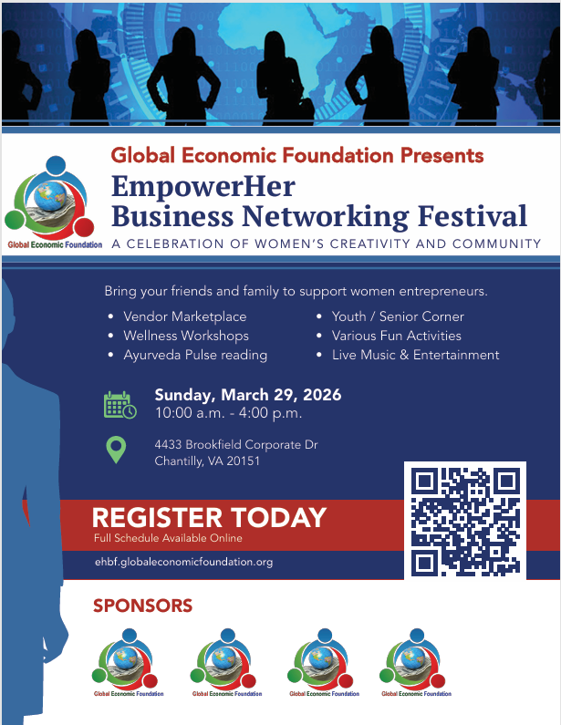 The EmpowerHer Business Festival is a premier event dedicated to celebrating the innovation, talent, and passion of women entrepreneurs in the Northern Virginia area. Organized by the Global Economic Foundation, the festival provides a powerful platform for networking, commerce, and community engagement. Join us to support local, women-owned businesses, gain valuable insights, and enjoy a day of family-friendly fun!